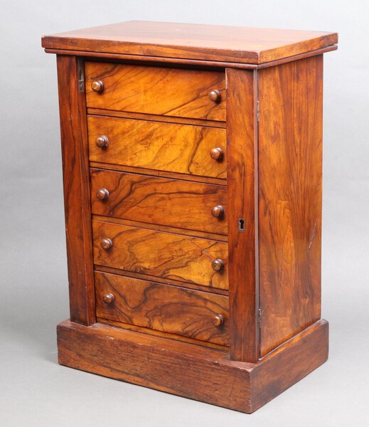 Lot 1009 A Victorian walnut table top Wellington chest of 5 drawers with turned handles, raised on a platform base 50cm h x 36cm w x 22cm d £80-120