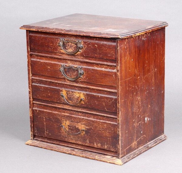 An Edwardian pine table top chest of 4 long drawers 35cm h x 34cm w x 27cm d