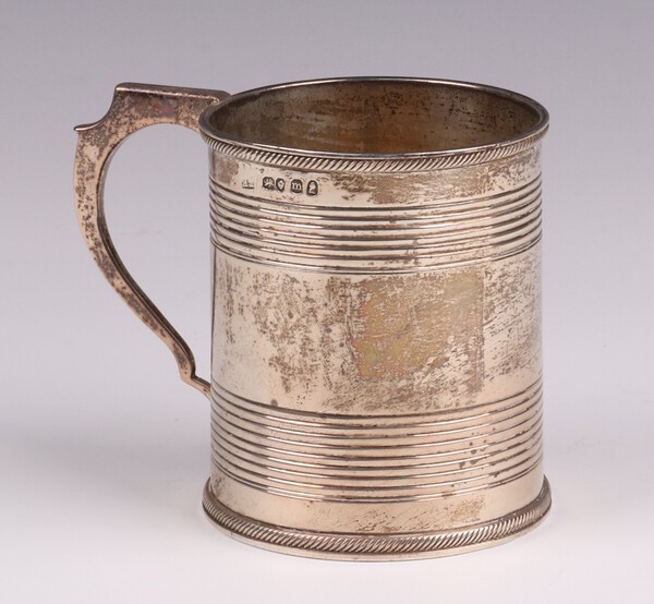 A George III silver tankard London 1787, makers marks rubbed, 8cm h, 195 grams