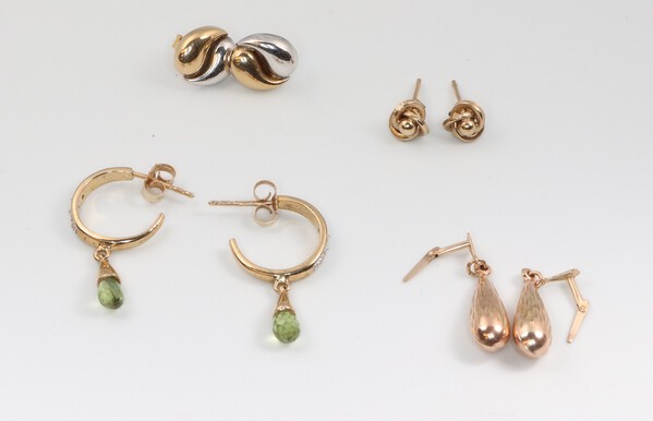 A pair of 9ct gold hoop gem set earrings and 2 pairs of stud earrings 4.4 grams