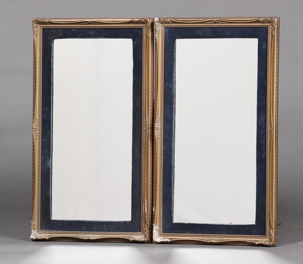 Lot 1265 A pair of rectangular plate mirrors contained in gilt plaster and blue plush frames 59cm x 42cm £40-60