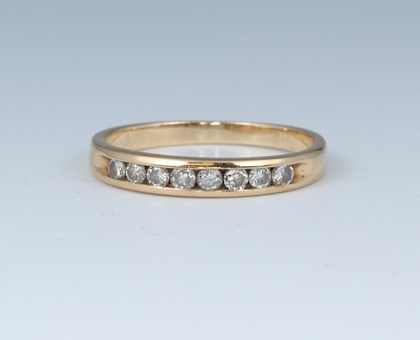 A yellow gold marked 14k half eternity ring set 8 diamonds, size L, 1.78 grams