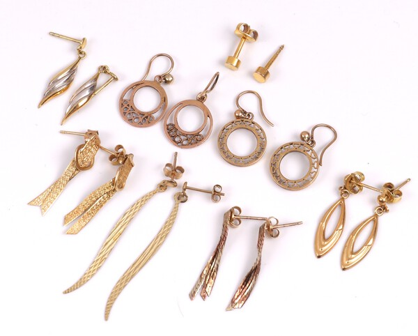 Eight pairs of 9ct yellow gold earrings (3 without butterflies) 7.3 grams