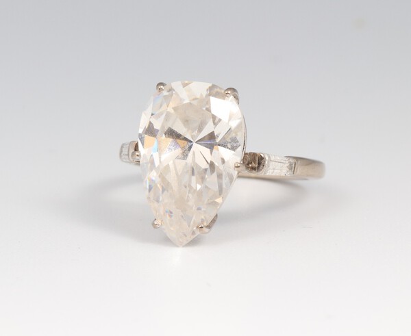 An 18ct white gold dress ring set a heart shaped cubic zirconia, size J 1/2, 4.7g