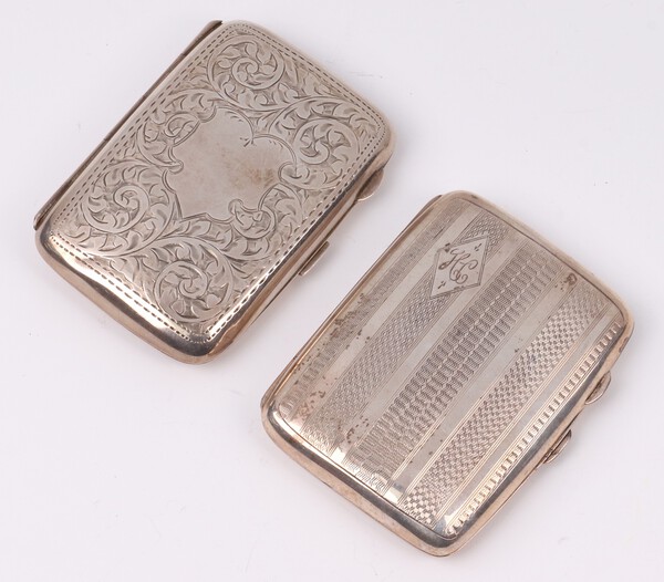 Lot 179 An engraved silver cigarette case Birmingham 1920 and 1 other Birmingham 1925, 113 grams £80-120