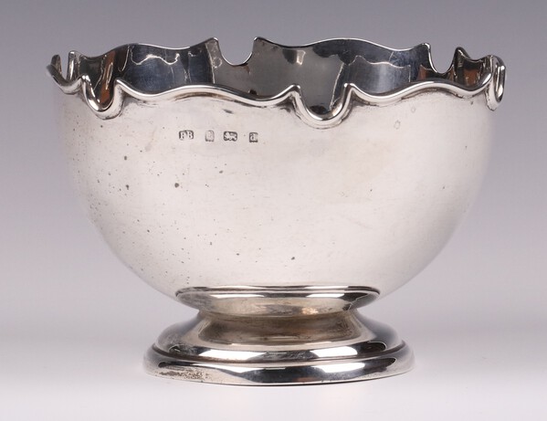 Lot 198 An Edwardian silver pedestal bowl with wavy border Birmingham 1903 by Barker Brothers, 213 grams £120-160