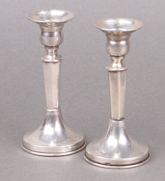 A pair of Continental 800 miniature candlesticks on circular bases, 56g