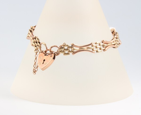 A 9ct 2 colour gold bracelet with padlock clasp, 17cm, 8.2g