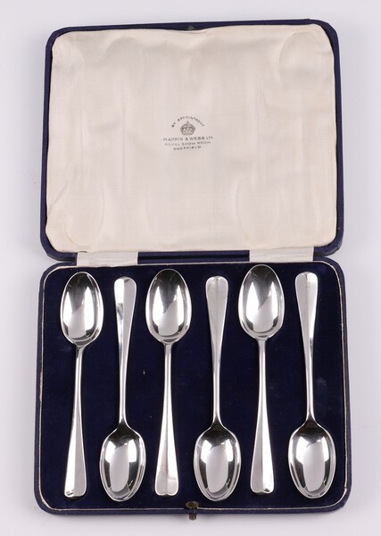 Lot 209 A set of 6 Old English pattern rat tail coffee spoons Sheffield 1931 by Mappin & Webb, cased, 96 grams £50-70