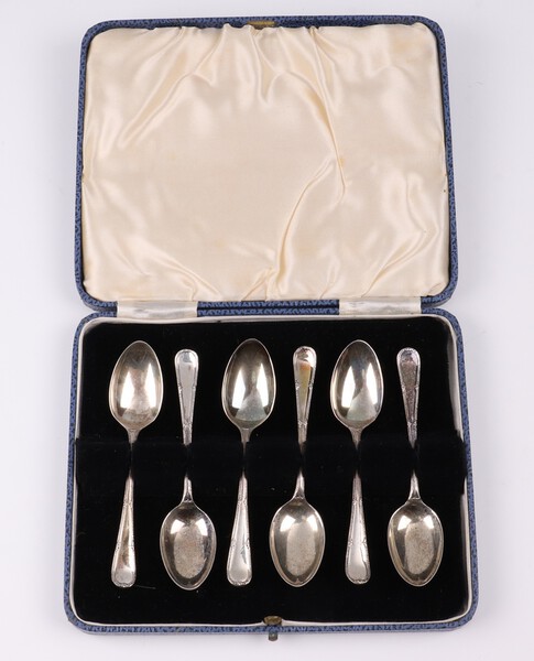 A set of 6 silver coffee spoons, Sheffield 1938 by Cooper Brothers, cased, 58 grams