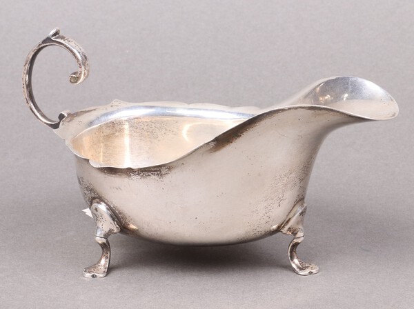 A silver sauce boat with wavy border, Chester 1921, 127g