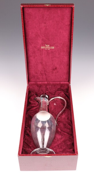 A glass and silver mounted ewer Sheffield 2007, 43cm h, by James Dixon & Sons, boxed,