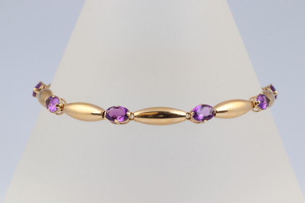 A 14ct yellow gold bracelet set 8 oval cut amethysts, 18cm 4.7 grams