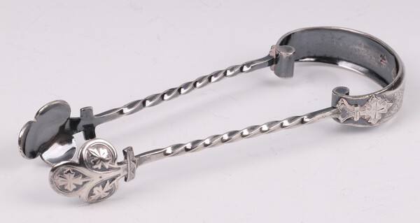 A pair of unusual Victorian silver plated sugar tongs with spiral decoration