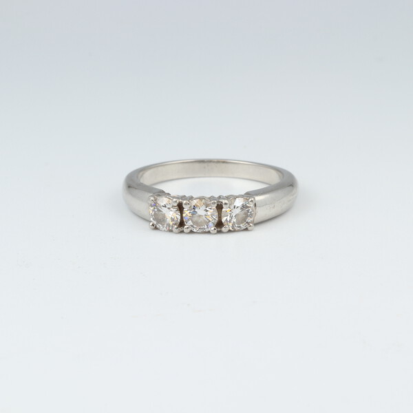 A platinum 3 stone diamond ring marked Plat., size O, 6.5 grams