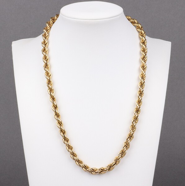 A gold marked 585 rope twist chain, 45cm, 20.5g