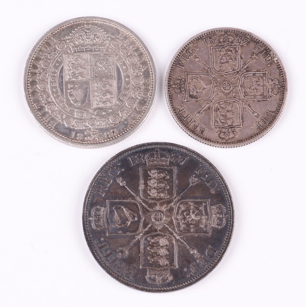 Lot 302 An 1887 Victoria Jubilee double Florin EF S.3923 together with an 1887 Halfcrown F S.1887 (polished) and an 1887 Florin S.3925 £50-70