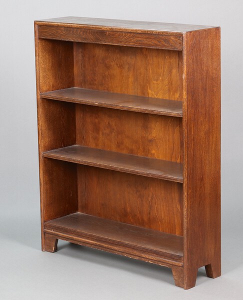 Lot 308 A 1930's oak and plywood open bookcase fitted 2 fixed shelves 112cm h x 91cm w x 24cm d £100-150