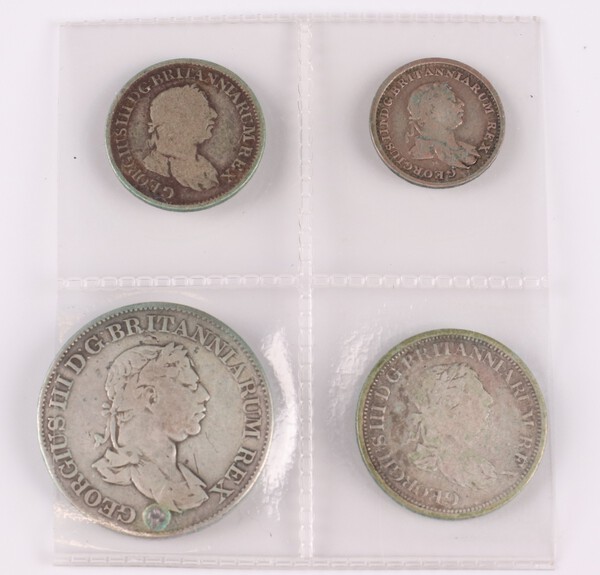 Lot 316 An 1816 set of four sterling silver coins for Demerary and Essequibo (now Guyana). Grade F-VF. KM11-14 £50-75