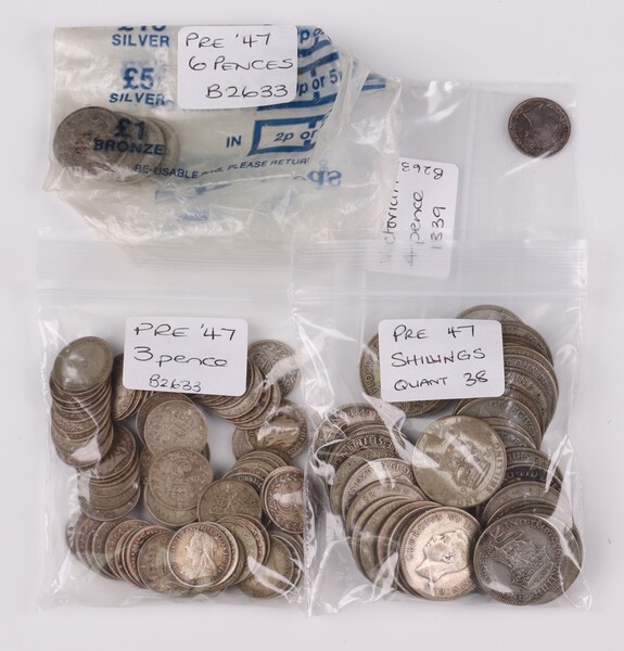 A collection of pre 1947 silver coinage, total weight 350 grams