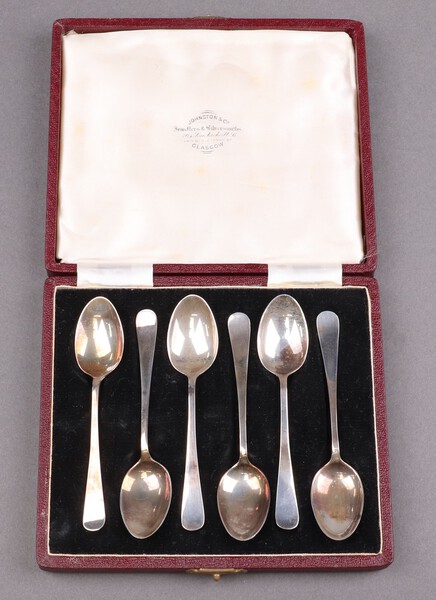 Lot 323 A cased set of 6 Old English silver coffee spoons, Sheffield 1955 by Cooper Brothers and Sons, 54g £50-60