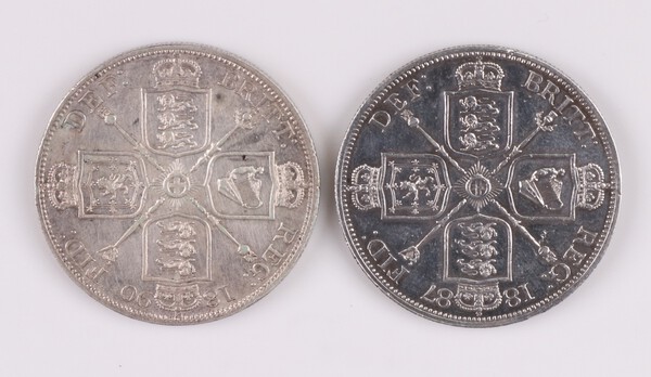 An 1887 Victoria Jubilee double Florin F S.3923 together with an 1890 Double Florin
