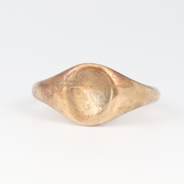 Lot 36 A 9ct gold signet ring, the underside with inscription "From Mum & Dad 1.3.62", size N 1/2, 4.8 grams £130-160