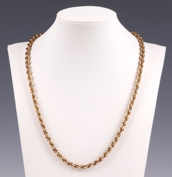 A 14ct yellow gold, marked 585, hollow spiral link necklace, 19cm, 11.8 grams