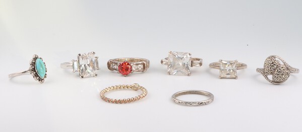 Lot 40 Five silver dress rings set cubic zirconia and other stones, sizes K, K, K, O 1/2 and O 24.9 grams and 3 other rings £40-50
