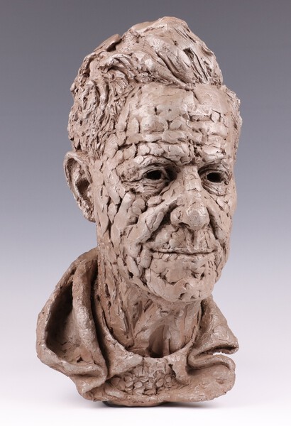 Dr Alexander R. Graham, Bust Portrait of Barnes Wallis, painted resin, 1966, 40cm h x 21cm w x26cm d . Provenance: Sir Barnes Wallis thence by descent. Note. Dr Alexander Graham R.M.S., M.B., Ch.B., D.P.H., Barrister-at-Law, served as Medical Officer of Health for Lancaster and later for the Borough of Mitcham. A close friend of Wallis, he was also an accomplished portrait painter and sculptor. Graham took up the study of sculpture later in life at Wimbledon School of Art, exhibiting at the Royal Academy in 1963 and frequently with the Society of Portrait Sculptors. He was elected a member of the Society in 1966 and served as its Honorary Secretary from 1968 until 1980. Following Graham's death in 1986, his widow, Marjorie, presented another cast of the present work to the National Aerospace Library at Farnborough. A photograph of Wallis standing beside the sculpture was likely taken to commemorate its presentation to the Library.