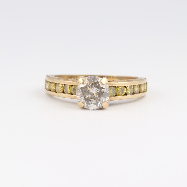 A 9ct yellow gold ring set moisannites, size N, 2.9 grams