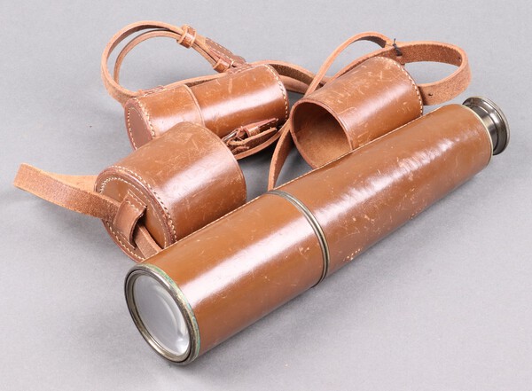 Lot 441 Dolland London, a 3 draw telescope with leather case and spare lens (strap to main body missing) £50-75