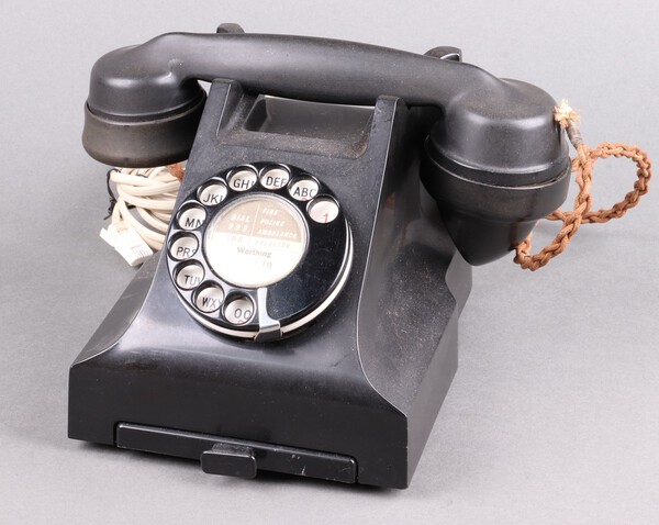 A GPO black Bakelite dial telephone, base marked FWR 58/2