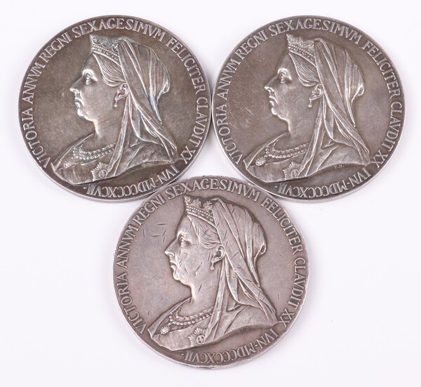 Three Queen Victorian Diamond Jubilee silver medallions, 252g gross