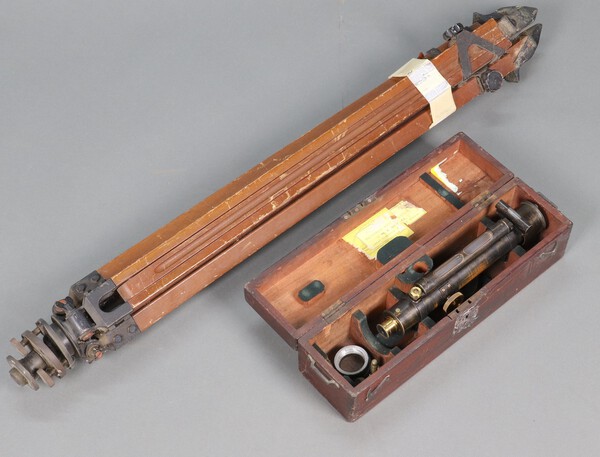 Lot 484 A Stanley of Great Turnstile, High Holborn, surveyors dumpy level complete with tripod marked 8422, cased £40-60