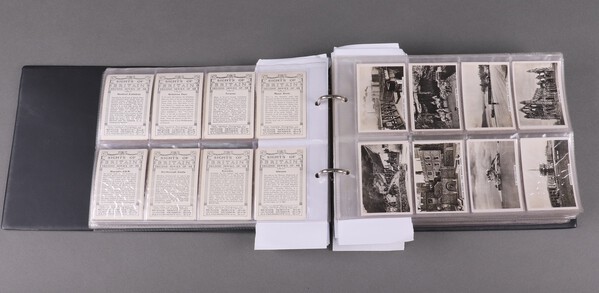 A binder of mainly complete sets of Senior Service cigarette cards to include "Sights of Britain" (3 series), "Holidays by the Sea", "Our Countryside", "Britain From the Air", "Coastwise Beautiful Scotland" and several sets of Nicholas Sarony "Links With the Past"
