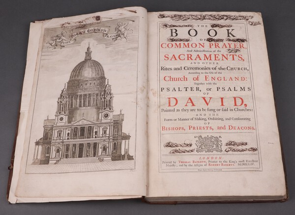 The Book of Common Prayer and Adminiftratoin of The Sacrements and Other Rites and Ceremonies of The Church, According to The Ufe of The Church of England: together with Psalter, Or Psalms of David, Thomas Bassett London 1754, fully bound in blind tooled reverse calf, the spine with raised bands, folio