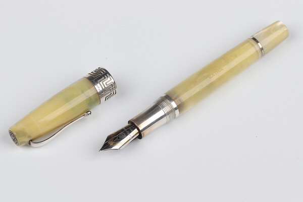 Lot 535 A Montegrappa Italian fountain pen, the nib marked 1912, contained in a marble effect and silver mounted case £100-150