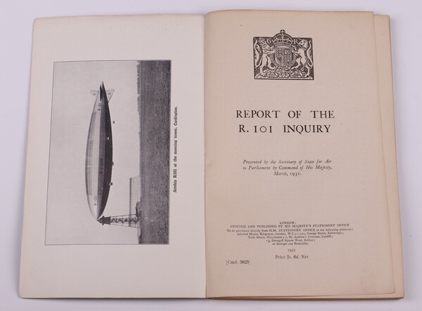 Report of the R.101 Inquiry booklet, London His Majesty's Stationery Office 1931, paper bound booklet, 127pp, the cover signed "FROM P.L. TEED TO B.N WALLIS" (in different hands), similar to Lot 53, though a scarcity of marginal notes.
