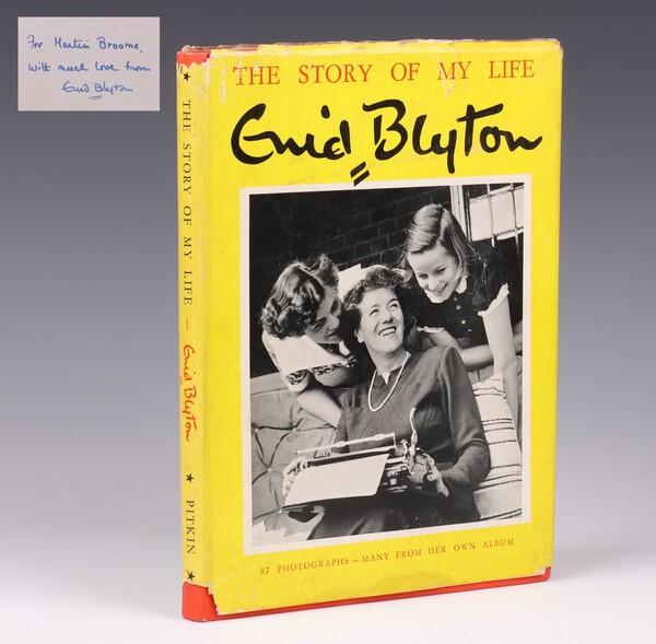 Lot 544 Blyton Enid, "The Story of My Life" Pitkin, London, 1952, a signed and dedicated by Blyton "For Martin Broome with much love from Enid Blyton", together with unclipped dust cover, 4to. £80-120