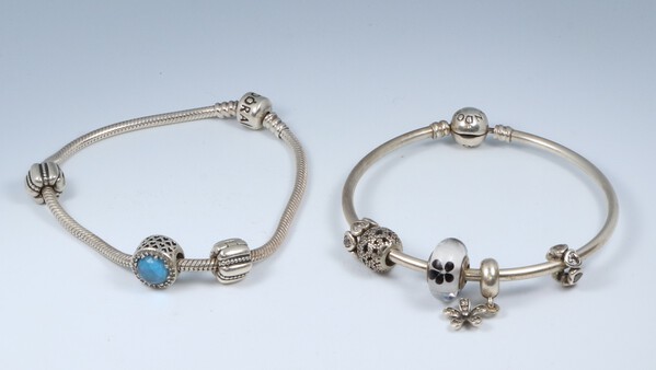 Two Pandora bracelets with charms