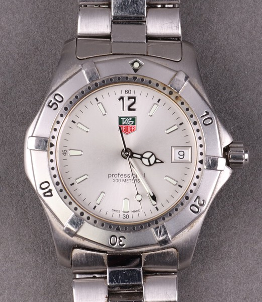 Lot 553 Tag Heuer, a gentleman's Tag Heuer WK112-0 wristwatch, the silvered dial with calendar aperture, contained in a steel case with integral bracelet, complete with spare link, booklet and card, boxed £400-600