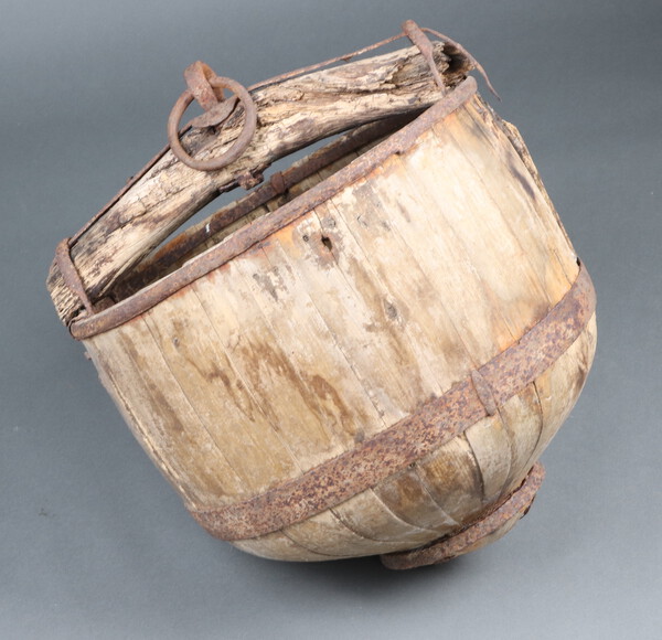 A 19th Century Continental coopered well bucket 53cm h x 47cm diam.