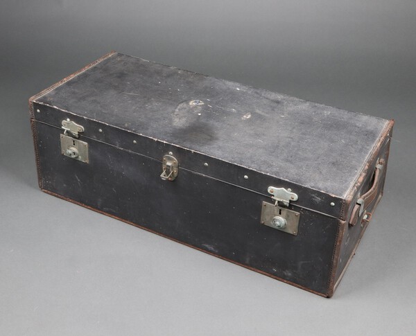 A 1930's fibre twin handled car trunk with chrome mounts 29cm h x 84cm x 44cm d
