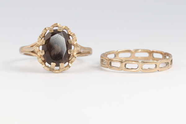 A 9ct gold ring size O, 0.9g together with a 9ct gold dress ring size O, 2.6g