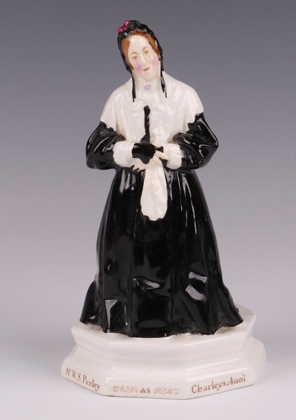 A Royal Doulton figure - Mr W S Penley as Charley's Aunt in the form of a Victorian lady on an octagonal base, black Doulton mark to the interior, HN35 17cm