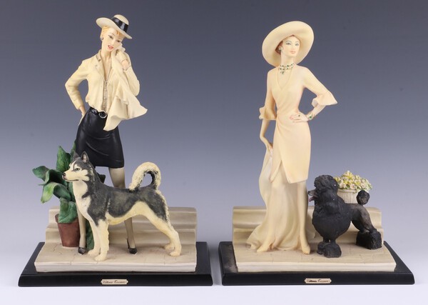 Lot 625 A.D.L. by Vittorio Tessaro, a pair of resin figures of 2 standing ladies with dogs 28cm £40-60