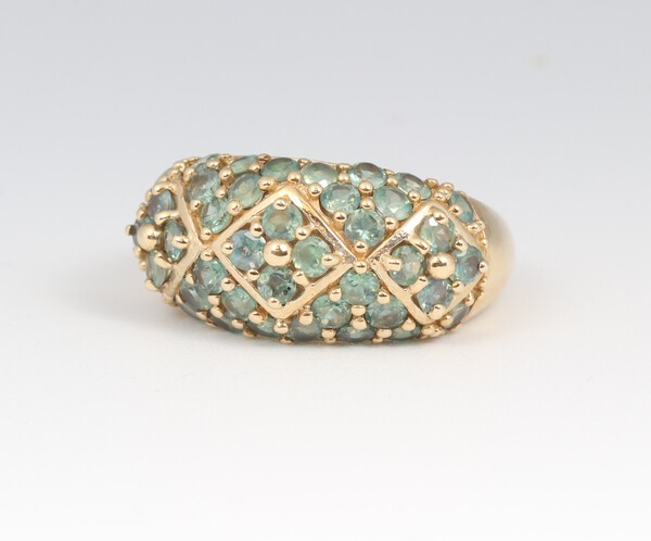A 9ct yellow gold topaz and aquamarine cluster ring, size N 1/2, 5.3 grams
