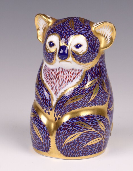 A Royal Crown Derby paperweight in the form of a Koala bear, the base with gold stopper I.II, 11cm