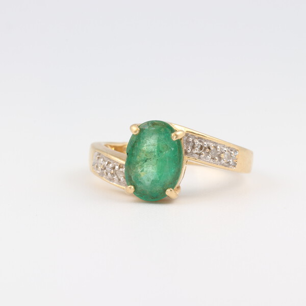 An 18ct yellow gold oval emerald and gem set ring, size N 4.7 grams